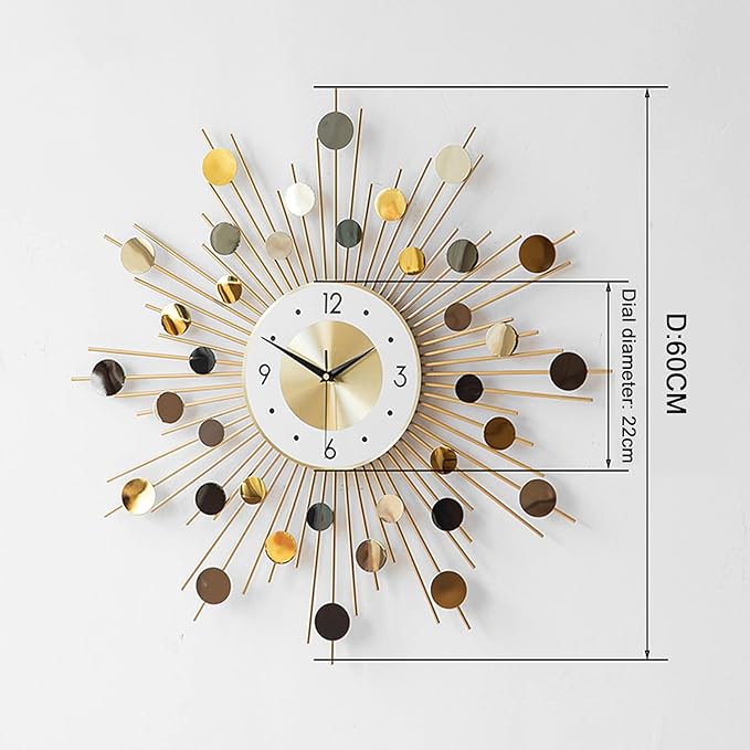 أضف لمسة فنية أنيقة إلى ديكور منزلك مع ساعة الحائط العصرية بتصميم ثلاثي الأبعاد المصنوعة من المعدن عالي الجودة. تتميز الساعة بلون ذهبي فاخر يمنح الحائط مظهرًا عصريًا وجذابًا، لتكون أكثر من مجرد ساعة، بل قطعة ديكور مميزة.