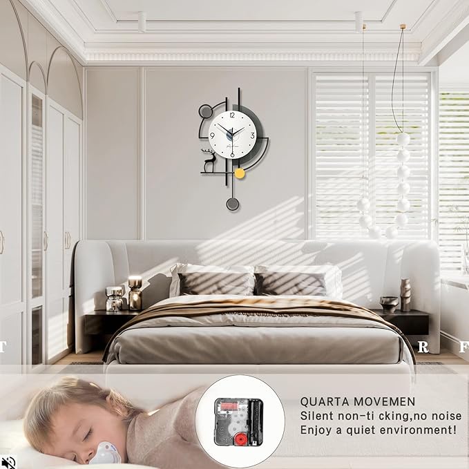 ساعة حائط كبيرة جدًا 81 سم بندول من فليبل بتصميم عصري مزخرف، حركة كوارتز صامتة بدون تكتكة، تعمل بالبطارية، مثالية لغرفة المعيشة وغرفة النوم والمكتب.