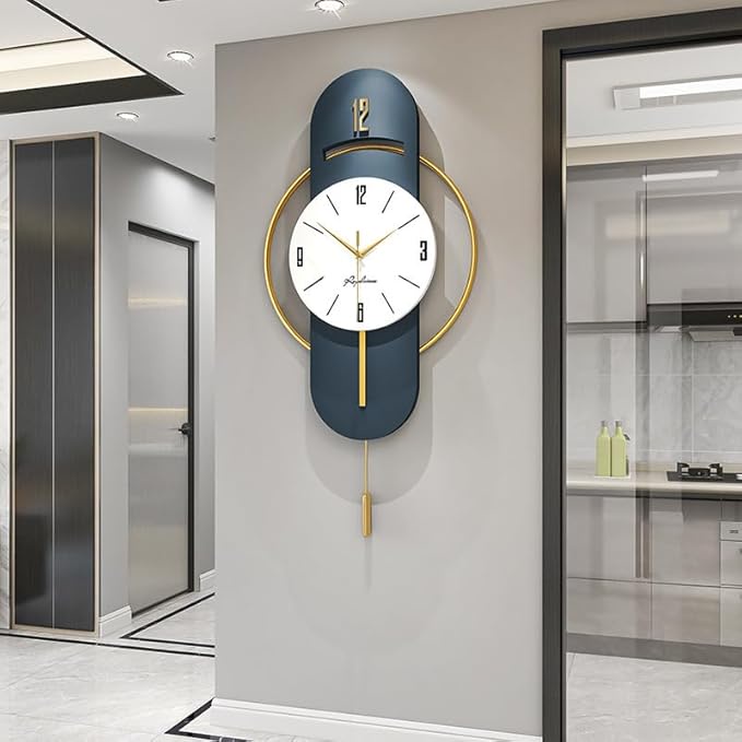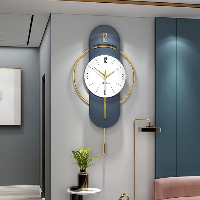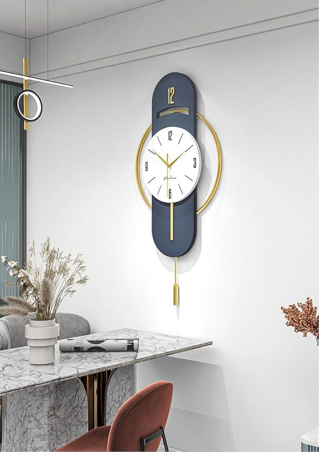 ساعة حائط أوروبية فاخرة من ديشين مصنوعة من المعدن والكريستال، تصميم فني إبداعي بلون أزرق عتيق، عرض تناظري أنيق لديكور غرفة المعيشة.