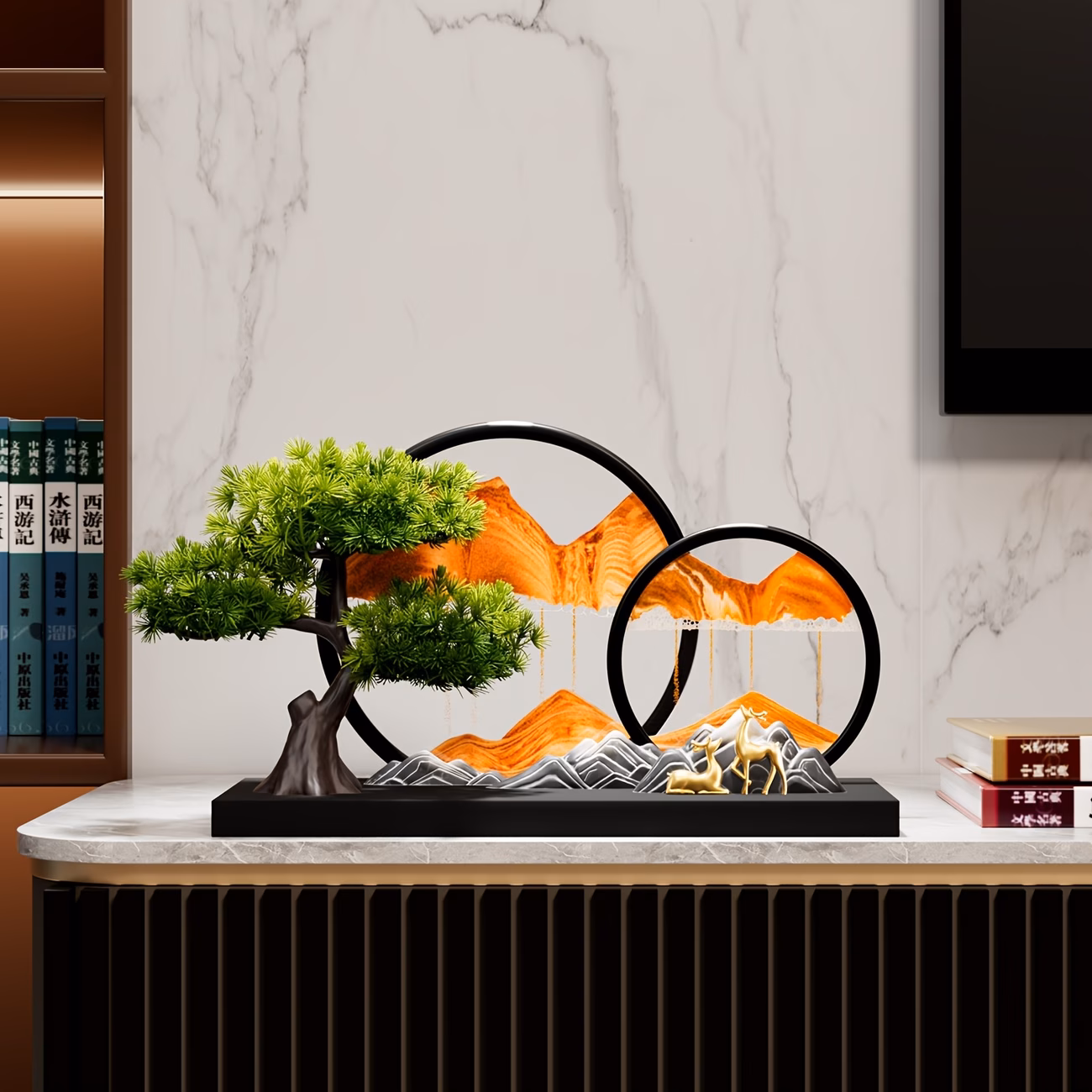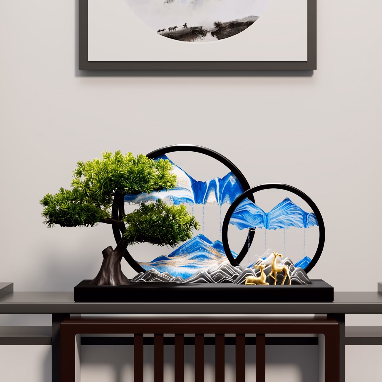لوحة رملية مزدوجة التدفق مصنوعة من الراتنج عالي الجودة، ديكور فاخر بالطراز الصيني الحديث للمكاتب، غرفة المعيشة، والمدخل.
