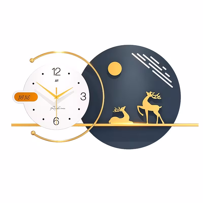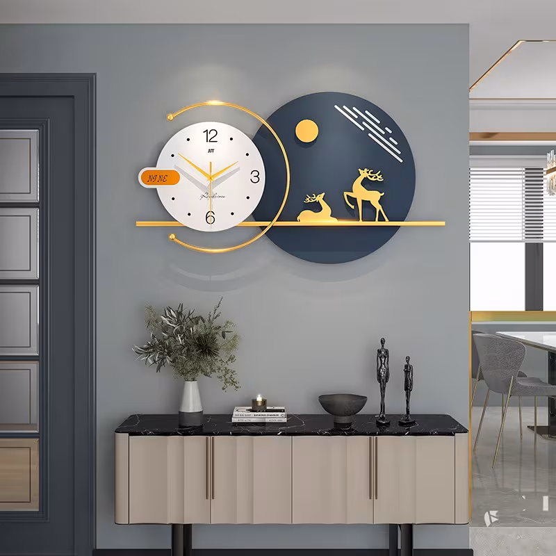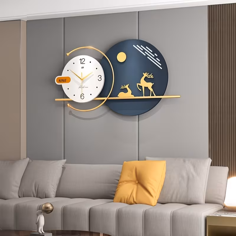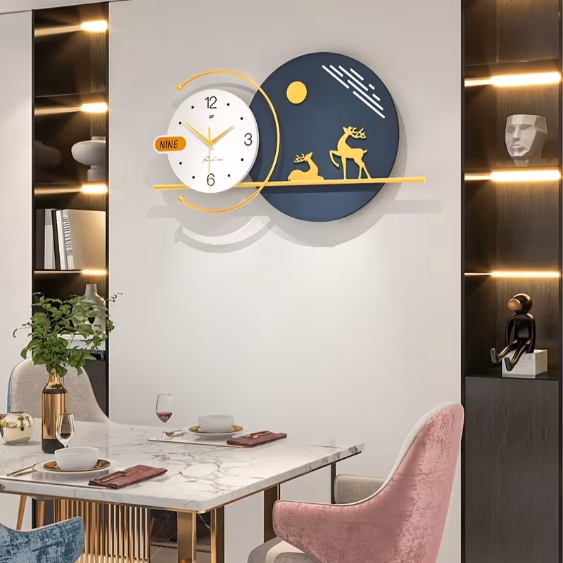 ساعة حائط عصرية وبسيطة لغرفة المعيشة، تضيف لمسة ديكور أنيقة وعالية الجودة للمنزل. تصميم مبتكر يصلح أيضًا كساعة طعام إبداعية، تجمع بين الجمال والوظيفة العملية لتزيين المساحات الداخلية بشكل راقٍ.