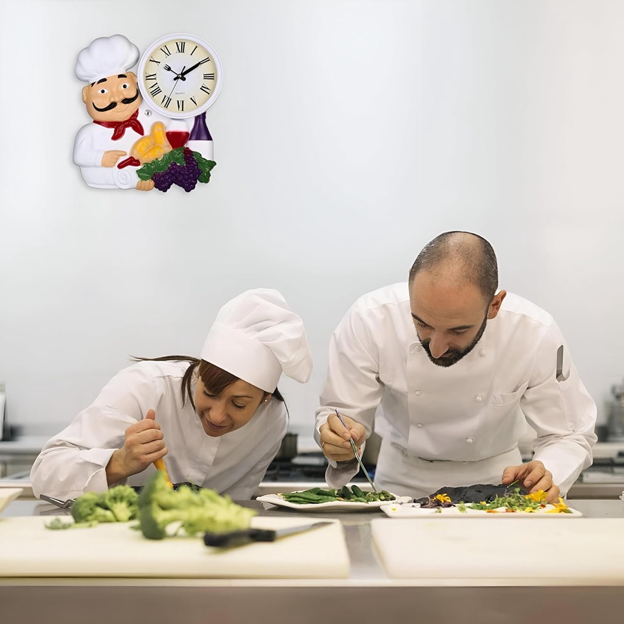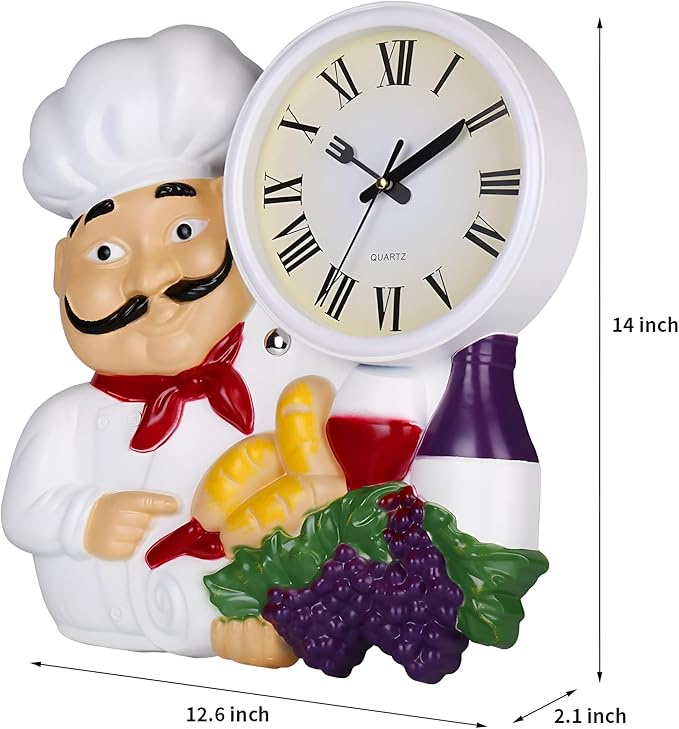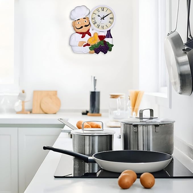 أضف لمسة من المرح والأناقة لمطبخك مع ساعة الحائط المزينة بتمثال شيف.