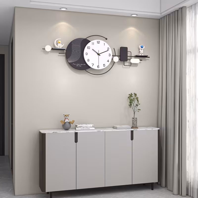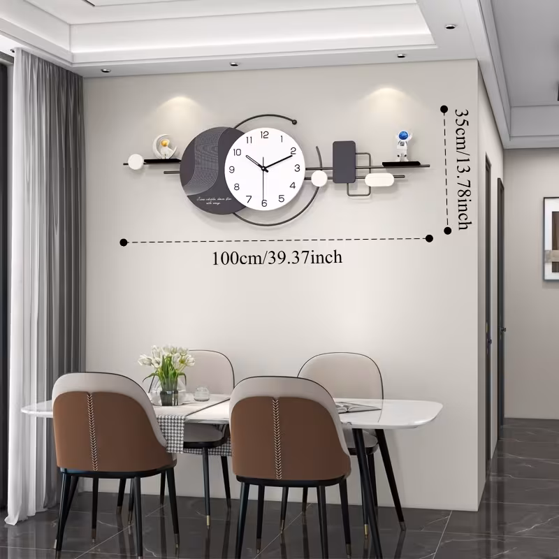 اكتشف ساعة الحائط الكبيرة من TWEM بحجم 40 بوصة، تصميم أفقي بسيط مزين بزينة رائد فضاء ورف تخزين عملي. مثالية لغرف المعيشة، غرفة النوم أو المكتب،
