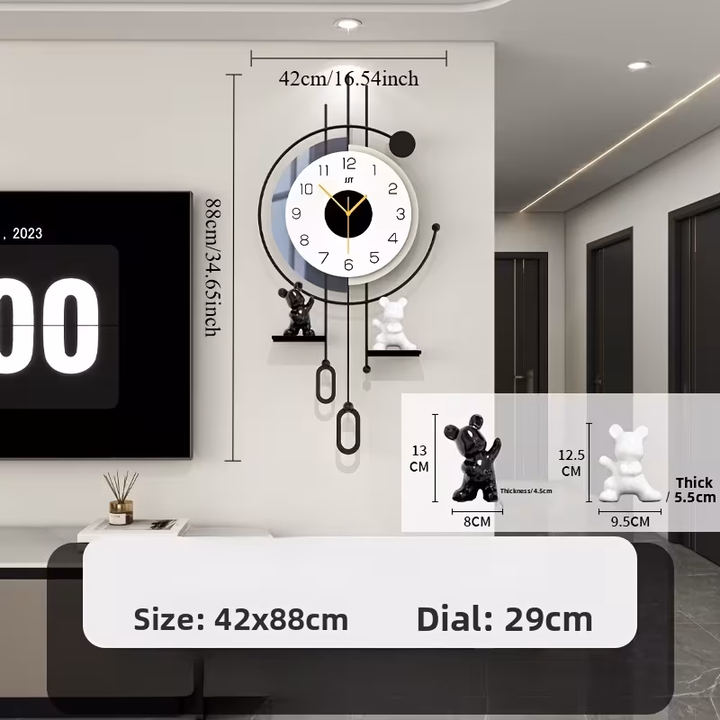 أضف لمسة عصرية وعملية لمنزلك مع ساعة الحائط الكبيرة من TWEM، صامتة تمامًا بدون أي نبض مزعج، ومزينة بتصميم عصري مع ميزان ورف تخزين عملي. تعمل بحركة كوارتز بالبطارية، مثالية لغرف المعيشة، غرفة النوم، الدراسة أو أي مساحة داخلية.