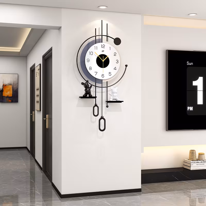 اكتشف ساعة الحائط الكبيرة من TWEM، صامتة وعصرية مع ميزان ورف تخزين عملي. مثالية لغرف المعيشة، غرفة النوم، الدراسة أو المكتب، وتضيف لمسة فنية