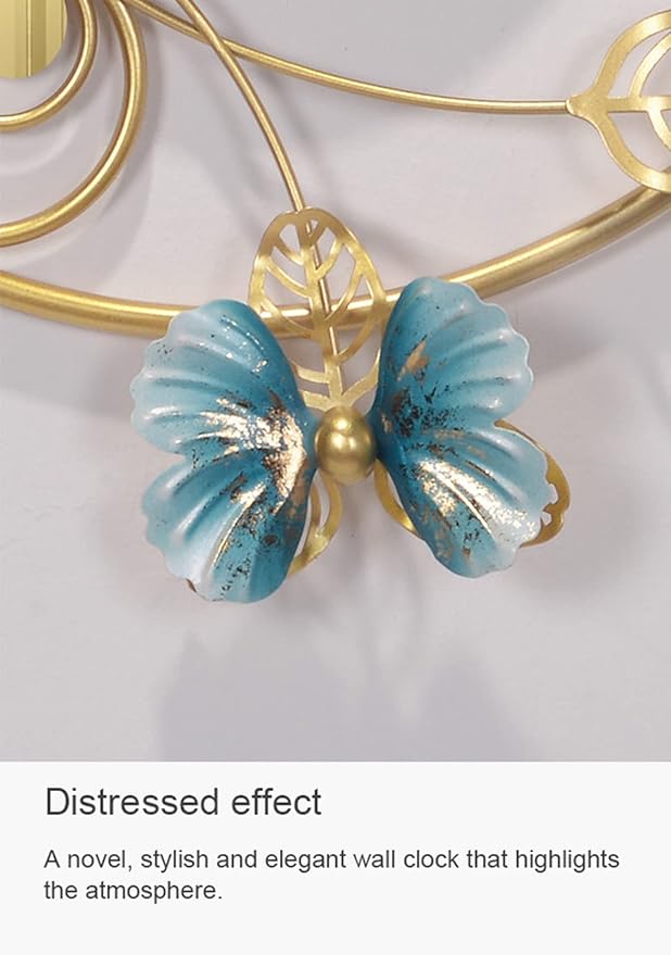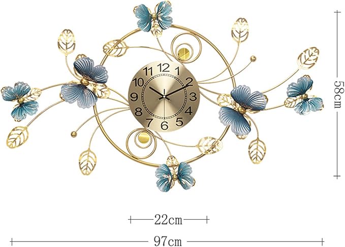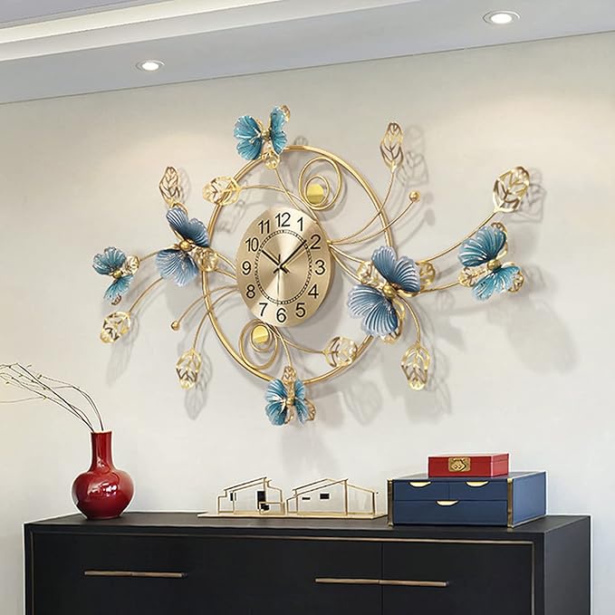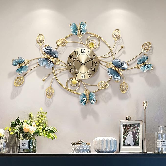 ساعة حائط فنية حديثة من LEAYAN بتصميم فراشة معدني كبير، تضيف لمسة ديكور طبيعية وعصرية لأي مساحة داخلية.