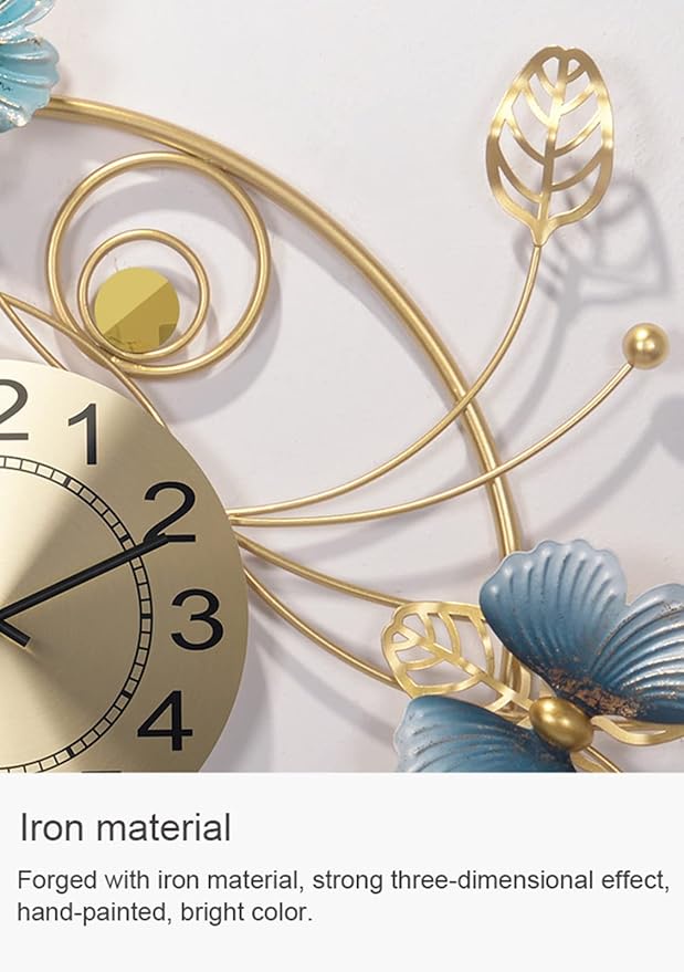 ساعة حائط كبيرة من LEAYAN بتصميم فراشة معدني عصري على شكل ورقة شجر، حركة كوارتز صامتة بدون تكتكة، مثالية لغرفة المعيشة، النوم، المطبخ والمكتب.