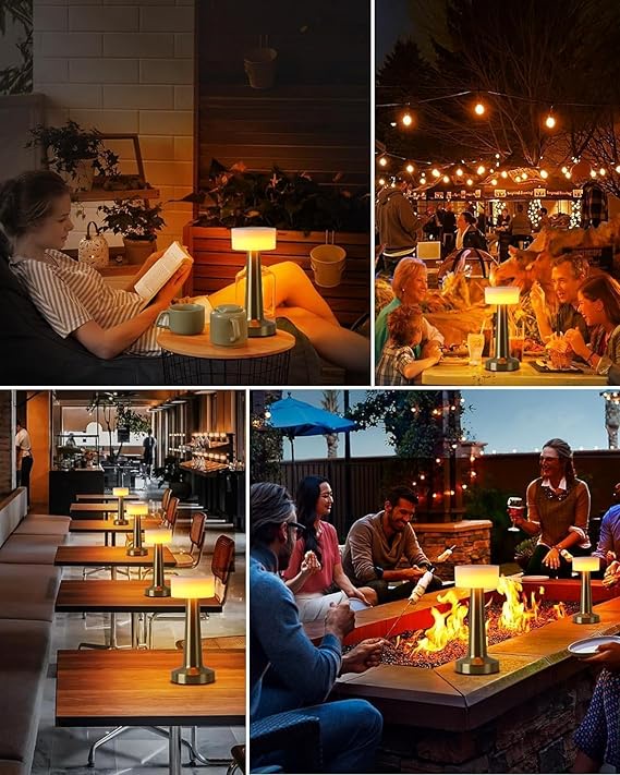 مزود بمستشعر لمس حساس وسهل الاستخدام للتحكم في الإضاءة بضغطة واحدة، كما يأتي ببطارية قابلة لإعادة الشحن عبر USB لتتمتع بحرية الحركة بدون أسلاك مزعجة. تصميمه الذهبي المعدني يعطي لمسة فاخرة في ديكور المكان.
